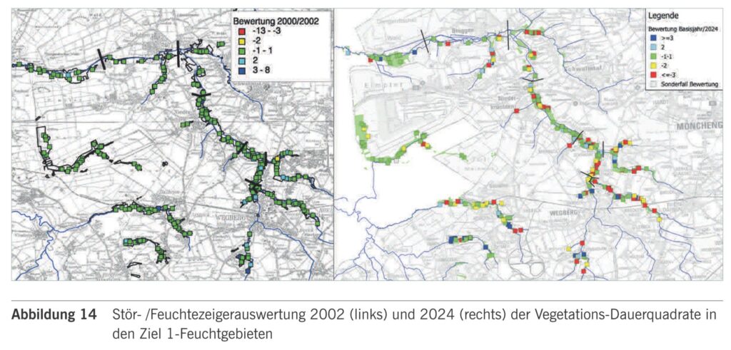 Das zeigen Vegetationsaufnahmen, die der Erftverband seit Jahren im sog. Monitoring Garzweiler II durchführt und verfolgt, um sicherzustellen, dass die Ersatzwasserinfiltrationen in der Nähe der Feuchtgebiete auch Wirkung zeigen. Im Bereich der tagebaufernen Schwalm und seiner Zuflüsse gelingt das bisher auch rel. gut, im Bereich der Niers weniger.