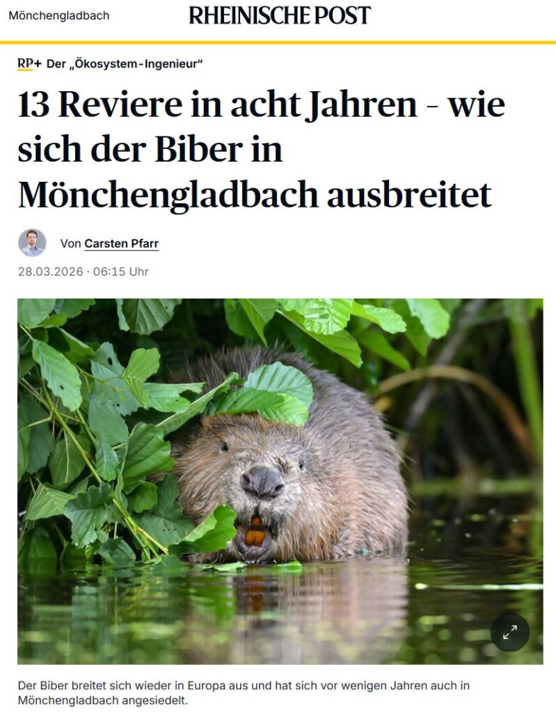 Wenn umgekehrt der Wasserspiegel plötzlich und auf Dauer erheblich steigt, vertragen das auch die Erlen nicht mehr und sterben ab. Aus der Krautschicht werden dann offene Wasser- und Schilfflächen. Das ist zur Zeit am Knippertz- und Hellbach, am Mühlenbach und anderen Bachtälern an Schwalm und Niers zu beobachten, wo sich seit wenigen Jahren der Biber breit macht. Das kann man bedauern, muss es aber nicht. Die nun entstehenden Flächen sind ebenfalls rar in NRW, stehen unter Naturschutz – ebenso wie der Biber selbst.