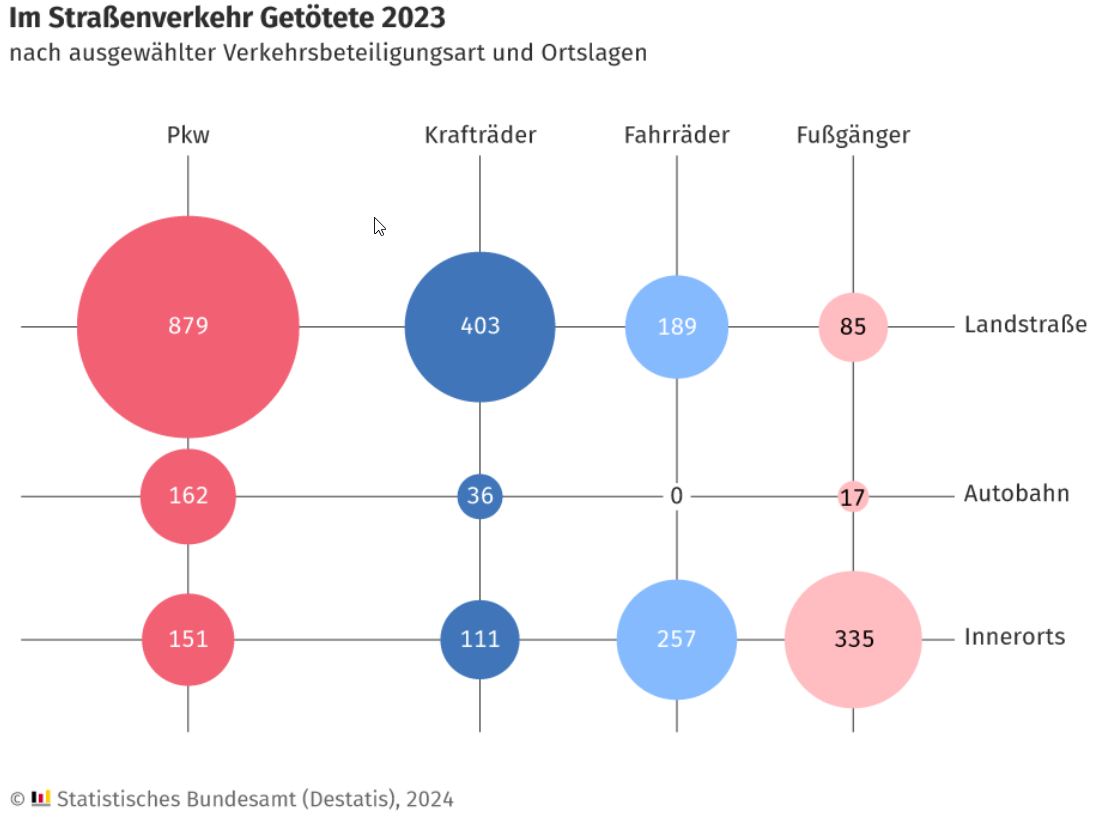 Die jährlichen Kosten durch Verkehrsunfälle in Deutschland betrugen 2023 laut Bundesanstalt für Straßenwesen (BASt) insgesamt 37,2 Milliarden Euro. Diese Summe setzt sich aus 24,7 Milliarden Euro für Sachschäden und 12,5 Milliarden Euro für Personenschäden zusammen. Die volkswirtschaftlichen Kosten umfassen Reparaturkosten, Behandlungskosten und Verdienstausfall.