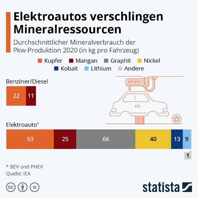 Die Produktion von Pkws verschlingt enorme Ressourcen an Rohstoffen, Arbeitskräften und Volksvermögen. Darin ändert das elektrisch betriebe e-Auto rein gar nichts, eher im Gegenteil, was Ressourcenverbrauch in die damit einher gehenden Umweltbelastungen angeht. Auch an der Überlastung der Straßen und dem Bild der Innenstädte ändern sie nichts.