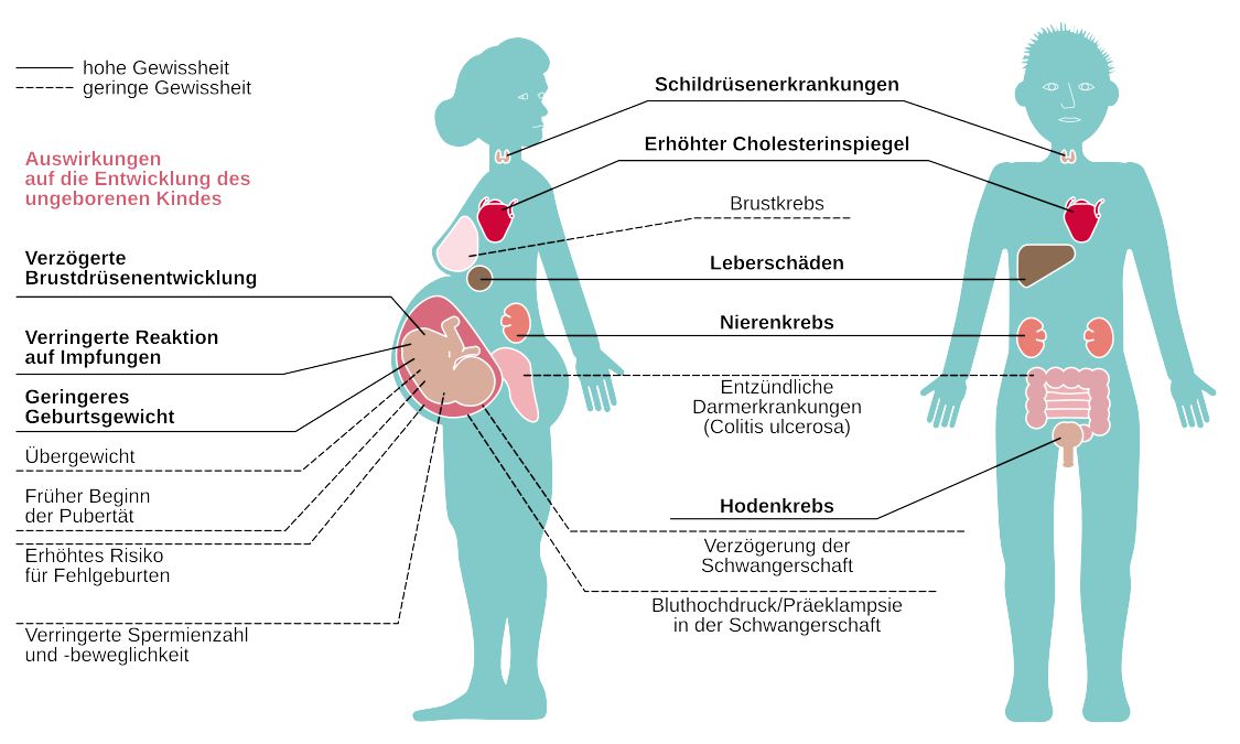 - Entwicklungseffekte: Einfluss auf die Entwicklung bei Kindern, einschließlich Übergewicht und frühere Pubertät.