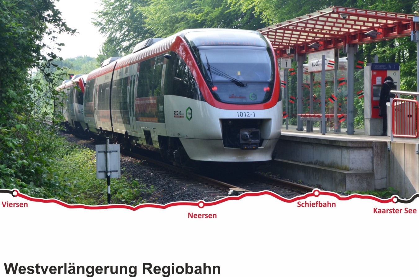 Die Streckenverlängerung der Regiobahn über den derzeitigen Endhaltepunkt in Kaarst bis nach Viersen hätte zahlreiche Vorteile: „Die Wohngebiete in Willich-Neersen und -Schiefbahn würden durch zwei neue Haltepunkte an das Schienennetz angeschlossen. Bei einer komfortablen 20-Minuten-Taktung würde dies Pendlern nach Düsseldorf viel Reisezeit ersparen.