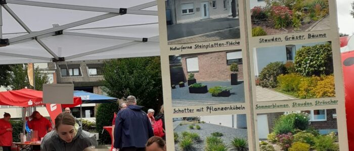 Infostand mit dem Scherpunktthemen „Natur in Mönchengladbach“ und „Freiflächenverbrauch“. Sie finden uns von 11.00 bis 18.00 Uhr beim Berggartenfest der VHS auf der Lüpertzenderstraße 85