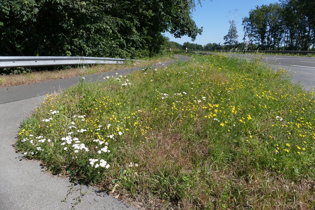Ganz düster und trist sieht es auch auf den meisten der rund 220 ha Ausgleichsflächen rund um das Stadtgebiet aus, die Investoren großer Bauprojekte in den letzten 30 Jahren für den Naturschutz bereitstellen mussten und die von der Stadt betreut werden. Für diese Flächen hat die Stadt das nötige Geld schon erhalten, um dort z.B. Wildblumenwiesen anzulegen. Und die Bauern erhalten entsprechend „Pflegegeld“ und Entschädigung, soweit sie Eigentümer und Bewirtschafter sind. Von „blühenden Landschaften“, die der Umwelt- und Baudezernent gerne preist, ist im Sommer allerdings wenig zu sehen, wie der BUND bei einer Erhebung 2019 entsetzt feststellen musste.