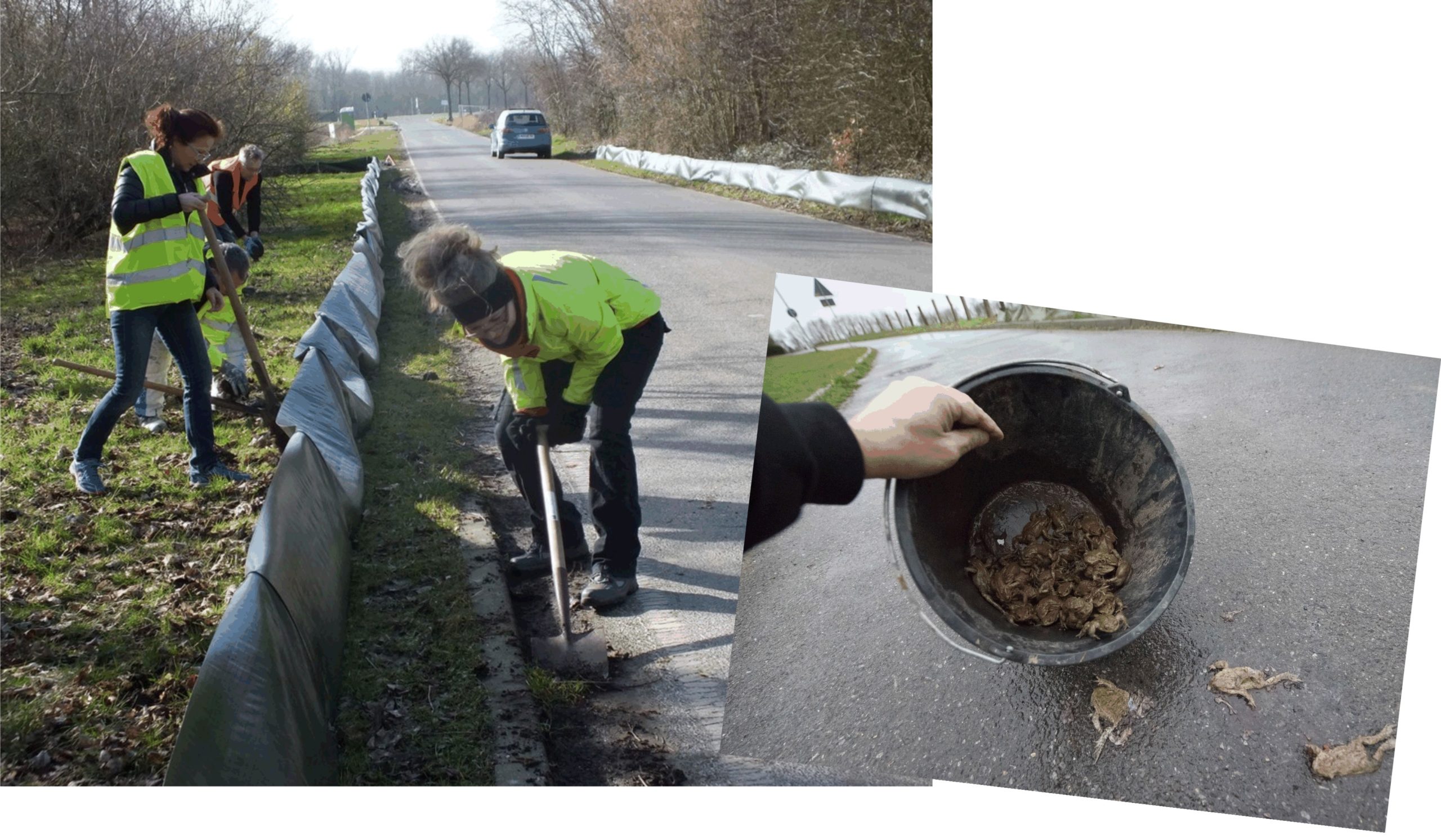 Auch in Mönchengladbach helfen Ehrenamtler des NABU an mehreren Stellen, Kröten und Grafrösche bei ihren Frühjahrswanderungen über die Straße. Dabei gab es schon erste Unfallopfer.